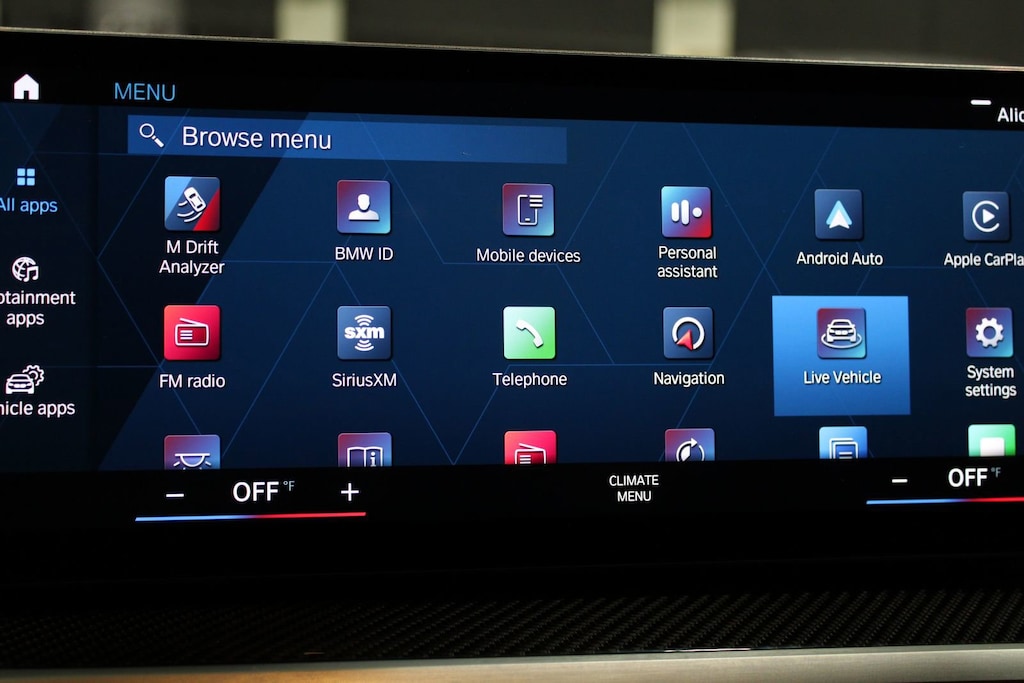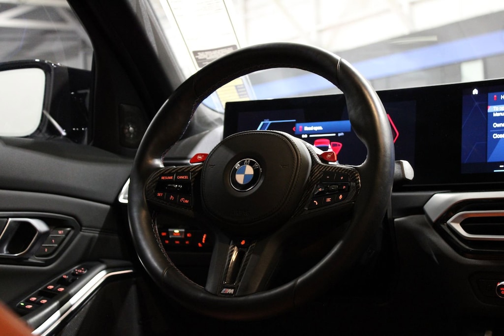 Adaptive suspension, Alloy wheels, Auto High-beam Headlights, Automatic temperature control, BMW Curved Display w/HUD, Connected Package Pro, Drive Recorder, Executive Package, Extended Merino Leather Upholstery, Exterior Parking Camera Rear, Front dual zone A/C, Fully automatic headlights, harman/kardon Surround Sound System, Heated Front Seats, Heated Steering Wheel, Illuminated entry, Leather Shift Knob, Lumbar Support, M Drive Professional, M Sport Seats, Memory seat, Parking Assistance Package, Parking Assistant Plus, Power Front Seats, Power Tailgate, Rain sensing wipers, Remote keyless entry, SensaTec Dashboard, Spoiler, Sport steering wheel, Steering wheel mounted audio controls.