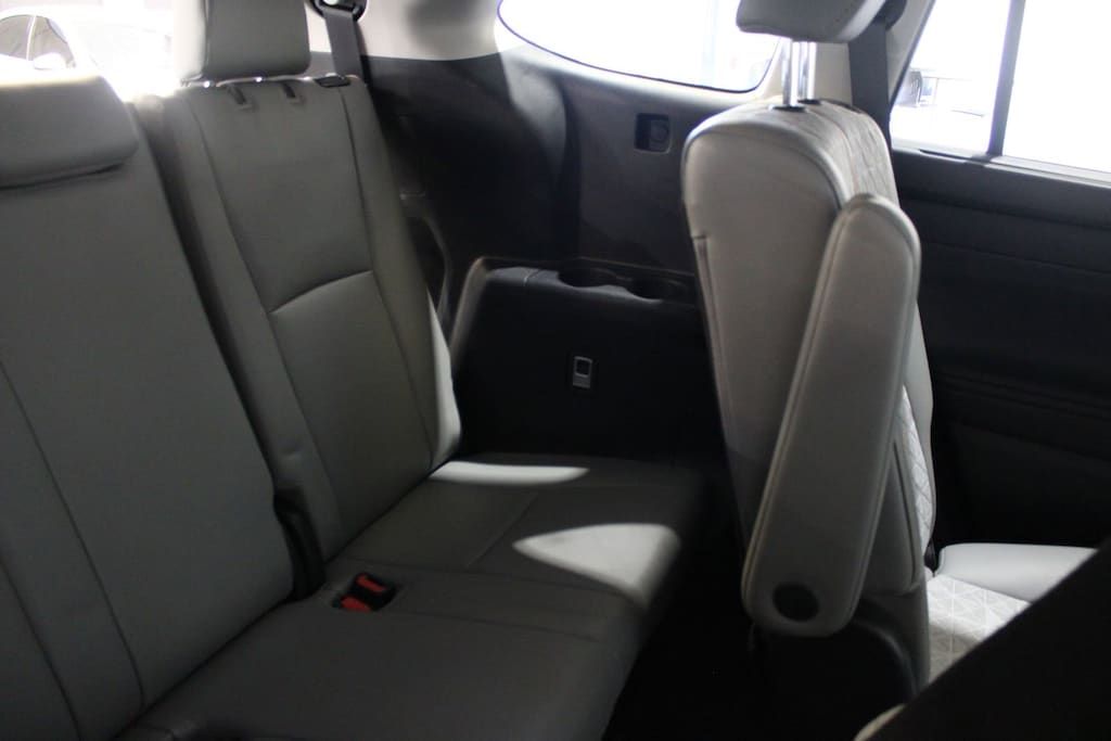 - The pull-up cup holder between the second-row captain seats is replaced by a fixed plastic holder bolted to the chassis, losing the convenience of extra storage / passage space between the seats. I found a video on removing it and fashioned an all-weather cover for the bolt area by carving up the old cargo area matt